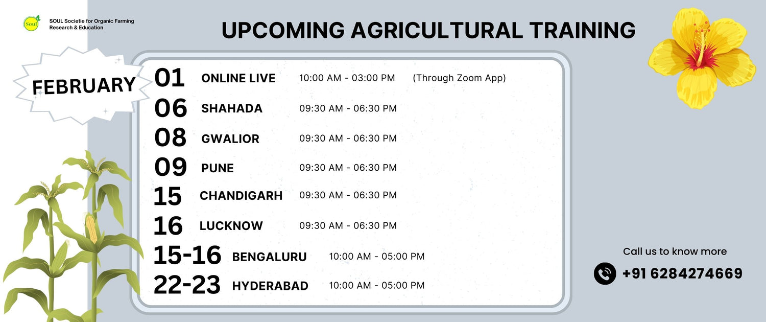 हैदराबाद के लिए विशेष रूप से तैयार किए गए हमारे अनुभवी विशेषज्ञों द्वारा आयोजित एक विशेष प्रशिक्षण सत्र में शामिल हों, जहाँ हम सफल जैविक खेती के रहस्यों पर चर्चा करेंगे। सीखने और विकास के एक दिन के लिए हमारे साथ जुड़ें!