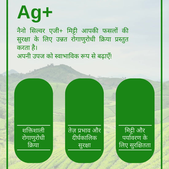 नैनो सिल्वर Ag+ एक पर्यावरण-अनुकूल, बहुउद्देशीय कीटाणुनाशक है, जिसे विशेष रूप से बैक्टीरियल ब्लाइट, अर्ली ब्लाइट, लेट ब्लाइट और अन्य फफूंद, बैक्टीरिया और वायरस जनित रोगों से बचाव के लिए बनाया गया है।